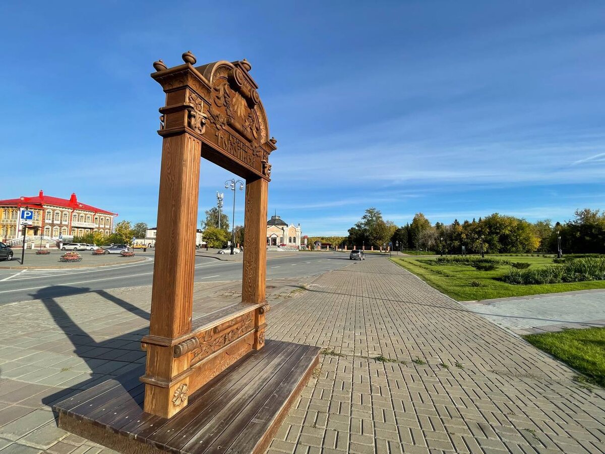 В Тобольске очень много красивых парков и скверов. Есть новые, есть исторические, есть те, которые сейчас активно обновляются. Но все они чистые и уютные. Среди самых популярных, судя по комментариям путешественников, – сад Ермака. Все в сад! Я легко разглядела ворота в сад, когда фотографировалась у арт-объекта в виде деревянного наличника. С большим удовольствием и не без пользы прослушала аудиосправку, пройдя на нее по QR-коду. Я вообще заметила в Тобольске большое количество QR-кодов на объектах культуры и памятниках, которые дают всю исчерпывающую информацию. При хорошей самодисциплине и самоорганизации в Тобольске много интересного и полезного можно узнать и без гида. Однако в случае, если он есть, можно задать всякие дополнительные вопросы, причем не только про историю, но и про современный город. Тем не менее, даже если гида нет, без информации турист не останется. Историческая прогулка Итак, сам сад находится на противоположном от кремля холме, разделенном Никольским взвозом.