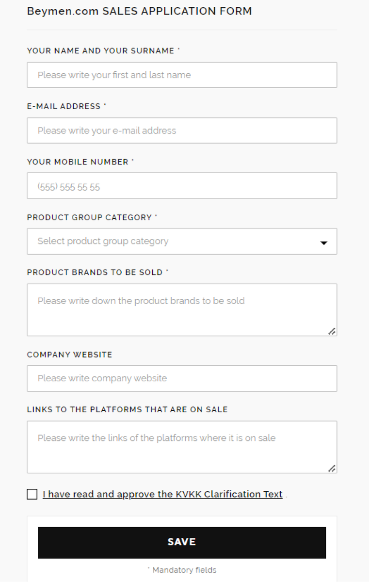 Форма для желающих стать продавцом турецкого бренда Beymen