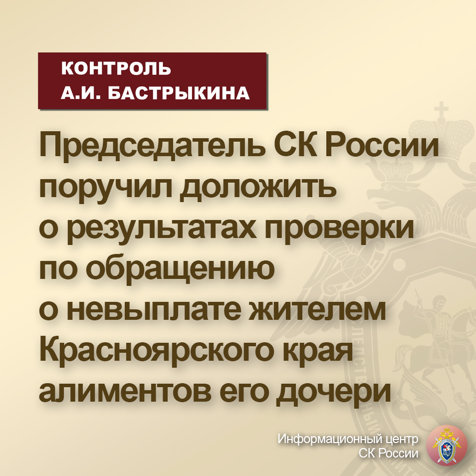 Председатель СК России поручил доложить о результатах проверки по обращению о невыплате жителем Красноярского края алиментов его дочери