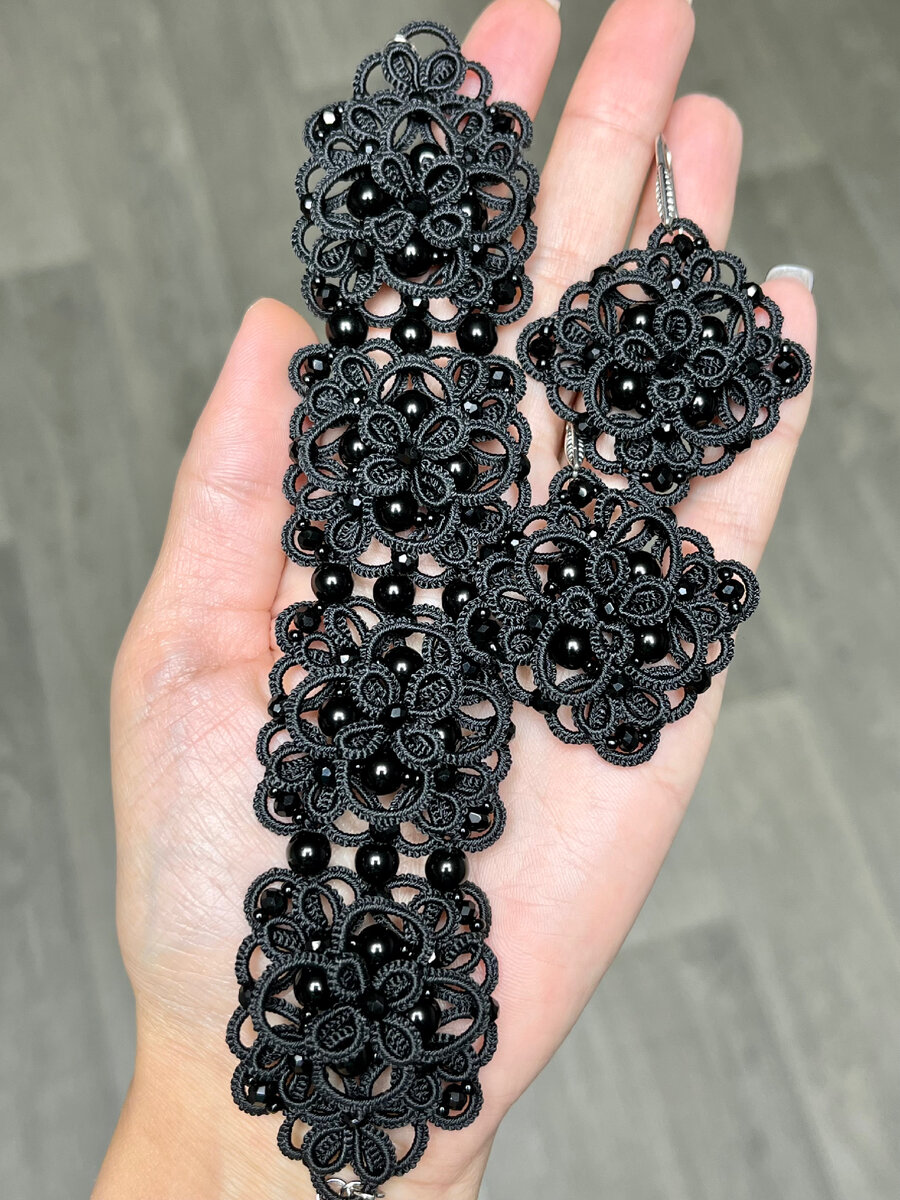 Набор серьги и браслет « Синяя ночь» выполнен по мастер классу.