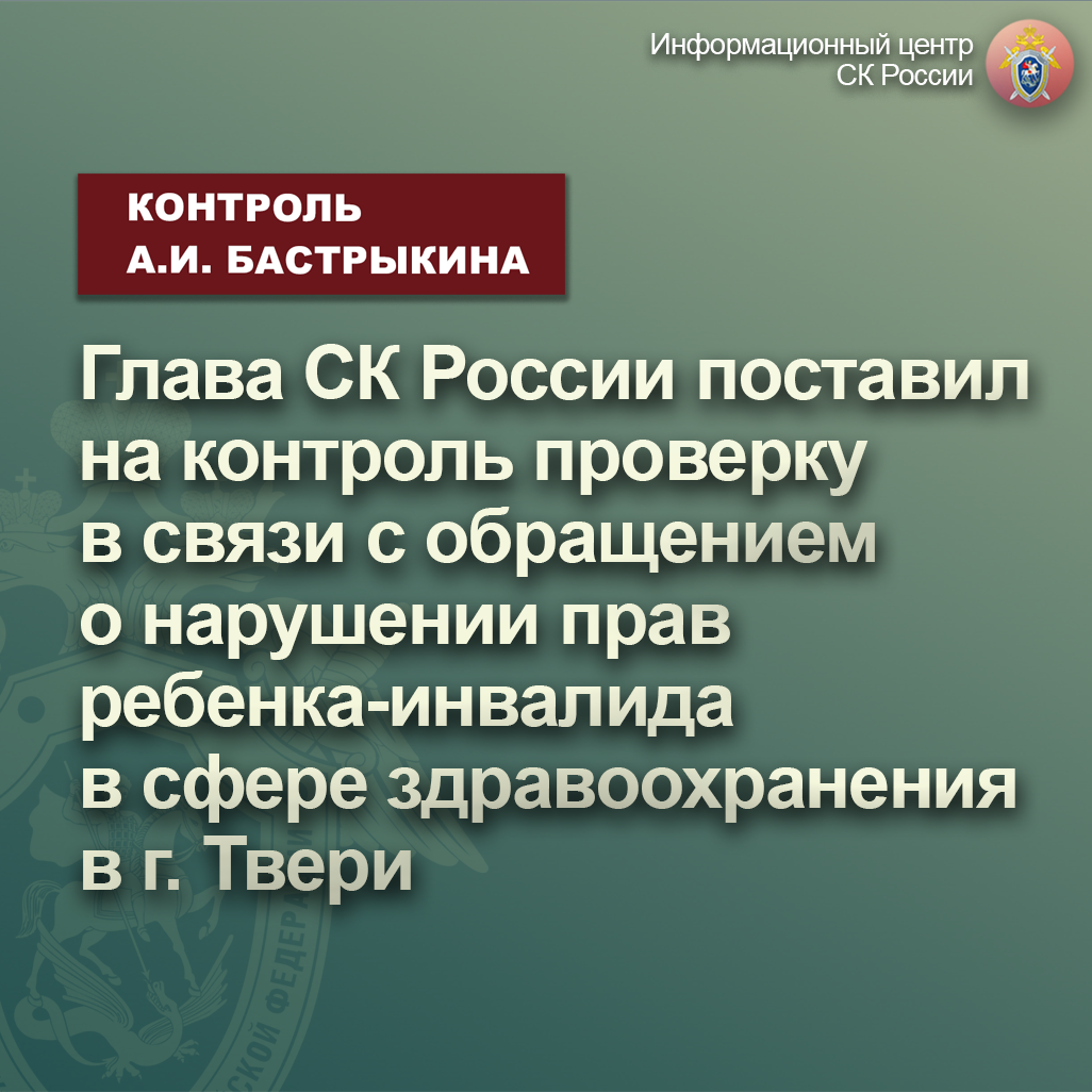 Глава СК России поставил на контроль проверку в связи с обращением о нарушении прав ребенка-инвалида в сфере здравоохранения в г. Твери