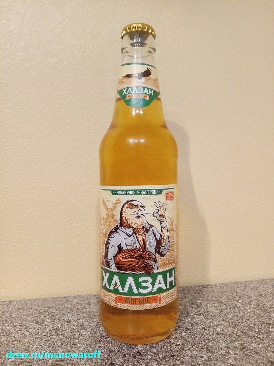 Обычно я прохожу мимо продукции пивзавода "Очаково", даже не глядя на нее. Но на югах хотелось какого-то разнообразия, поэтому взял бутылочку на пробу, тем более, что в жару такое пиво должно хорошо идти. Однако там я данное пенное продегустировать не успел и притащил его в Москву, где погоды не совсем благоприятствуют распитию таких напитков. Но что делать - есть такое слово "надо". Так что будем пробовать. Парочку "Халзанов" мне уже довелось продегустировать - обычного и нефильтрованного. Вполне неплохие варианты за свои деньги. Были. Я их пробовал пару-тройку лет назад, а за это время обычно пиво меняется в худшую сторону. Сорт этого года, появился в апреле. У меня бутылка июньская, а откупорил я ее через три месяца после розлива. Срок годности составляет год при температуре до +30 градусов. Почитаем описание: Пиво золотистого цвета с мягким сбалансированным солодовым вкусом и мягкой хмелевой горчинкой. Благодаря применению специальной технологии безобдирной фильтрации этот сорт об