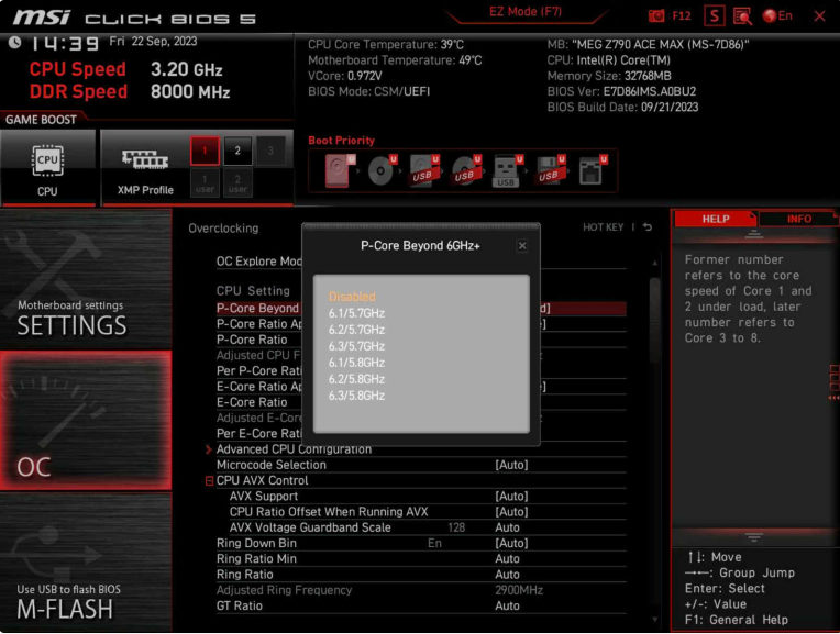 MSI представила новую опцию повышения тактовой частоты для процессоров Intel Raptor Lake, которая поднимет максимальную частоту высокопроизводительного ядра Raptor Cove за пределы 6 ГГц. Компания, похоже, решила подойти к выпуску процессоров Intel Core 14-го поколения «Raptor Lake Refresh» во всеоружии.
