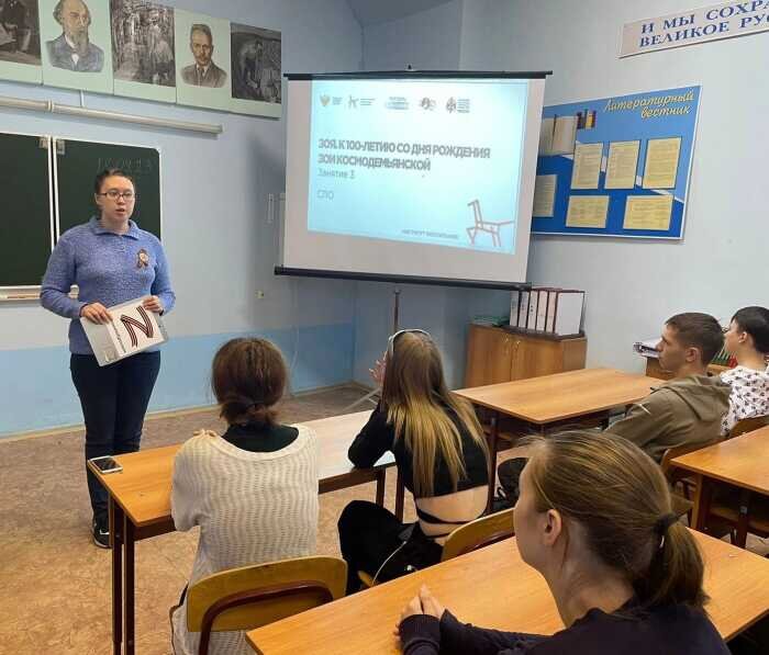 Для студентов Шахтинского политехнического и медицинского колледжей устроили встречи, в ходе которых провели беседы, посвященные 100-летию Зои Космодемьянской. Студентов заинтересовала биография разведчицы. Заведующая массовым отделом Центральной библиотеки имени Пушкина Наталья Сайбаталова подробно рассказала ребятам о подвиге Зои Космодемьянской, о том, когда она была удостоена звания Герой Советского Союза. В ходе разговоров о важном студенты посмотрели отрывки из фильма "Зоя" (2021 год), а также видео о музее Зои Космодемьянской. - Студенты сделали вывод, что любовь и беззаветное служение Отечеству лежат в основе героических поступков наших соотечественников на протяжении всей многовековой истории России, - говорит Наталья Сайбаталова. Комсомолка родилась в 1923 году в Тамбовской области. Через некоторое время семья перебралась в Москву, где Зоя с отличием окончила школу. Война сломала планы на дальнейшее обучение. Но девушка очень хотела сделать вклад в Великую Победу и