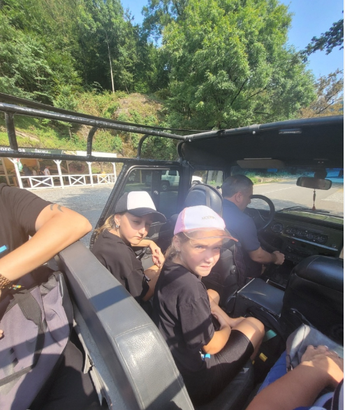 Первое, что мы увидели - это как с другого берега, по тросу ,, летит " человек, за ним ещё один. Экстрим! Страшно!