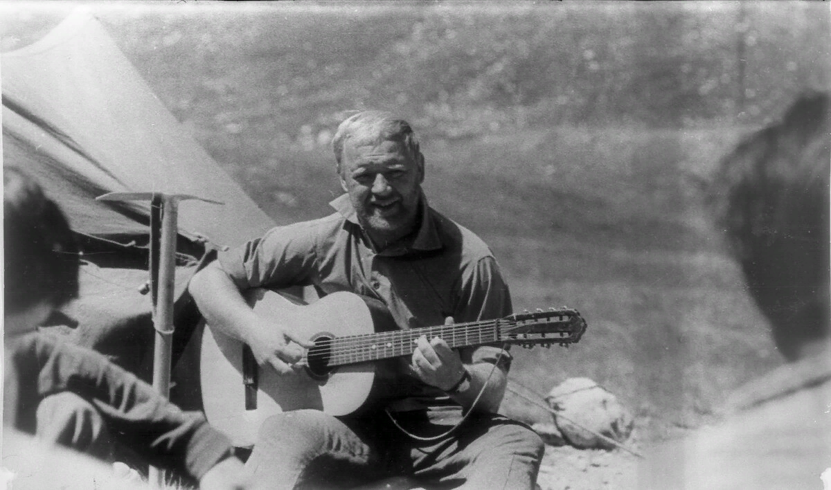 Борис Дьяков Давно это было… В 1966 г., сдав школьные выпускные экзамены, мы первым делом решили пойти в поход. Приехали в подмосковное «Калистово» и дружно двинулись к лесу. Девчонки затянули: «На солнечной поляночке, чему-то, чему-то, чему-то очень рад, сидел кузнечик маленький- коленками, коленками, коленками назад…» Когда они закончили, друг Саша сказал: «Сейчас я спою": Этот лётчик был мальчишка