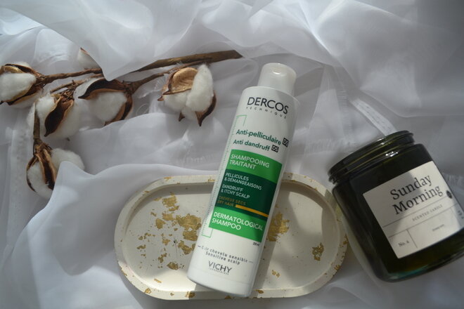 Всем привет. Я думаю, что не одинока с проблемой перхоти. У меня эта гадость появляется периодически и сейчас моё спасение — это Vichy Dercos Shampooing Traitant Шампунь-уход против перхоти для сухих волос. Оформление Я люблю оформление у Vichy, оно какое-то ненавязчивое, стильное, минималистичное. Этот шампунь в красивом зелёном оттенке, очень привлекательно визуально. По бокам коробки много информации о шампуне: сроки, способ применения, информация о бренде Сам шампунь у меня в объёме 200 мл, а также есть 390 мл, он уже с дозатором. Дизайн флакона повторяет оформление с коробки. Пластик мягкий, податливый, я такое люблю. Здесь нет дозатора, а простое отверстие, шампуня выдаёт немного, на 1 раз хватает. Текстура и аромат Текстура средняя по густоте, шампунь не стекает с руки, для меня это оптимальный вариант. Оттенок жизнерадостный оранжевый. Шампунь средне пенится, он не дает какую-то шикарную пену, но для очищения мне хватает. Но я всегда промываю волосы 2 раза. Отдушка яркая, интен