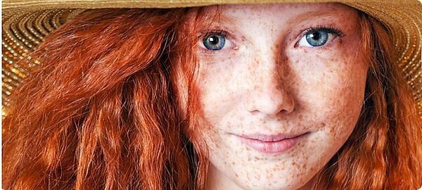 Худенькая, маленького роста с жиденькими рыжими волосешками, с курносым носом , усыпанным густо веснушками.