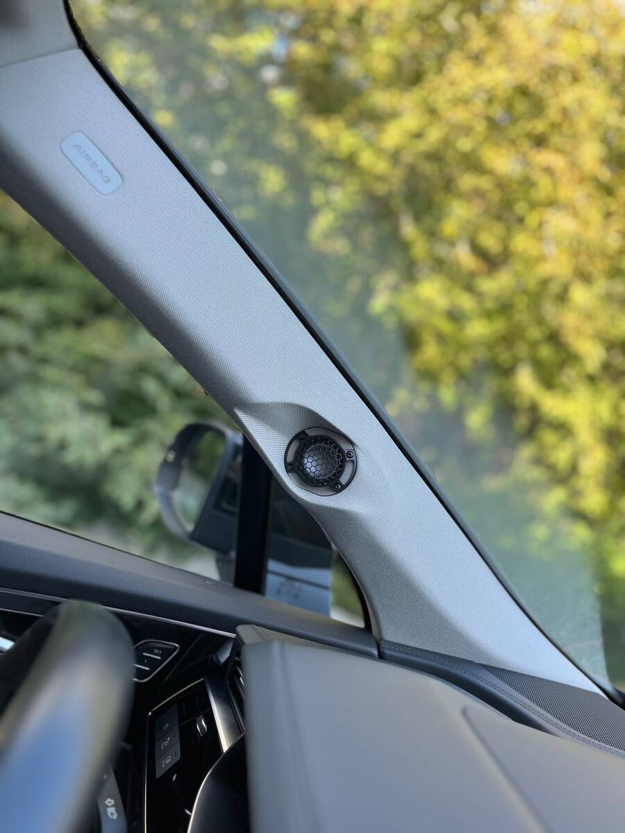 🟦Для инсталляции ВЧ динамиков мы изготовили подиумы в стойки лобового стекла. Для этого применяли 3D сканирование, моделирование, 3D печать.