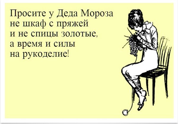 - После вязания спицами не машут. - Торопливый всегда вяжет дважды.