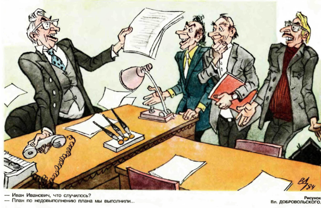 Рассказывали в советские времена такой анекдот, объясняющий, куда девается мясо, которого по отчетам ну просто завались, а в магазинах почему-то нет: «Приходит свинарка к председателю совхоза «Путь Ильича» и говорит: - Свинья опоросилась, два поросенка родилось. - Маша! Два поросенка – это очень мало. В районе не поймут, план не выполнится. В отчете напишем – четыре поросенка, я подпишу. В районе смотрят отчет из совхоза и вызывают председателя: - Иван Иваныч! Район не выполняет план по мясу, а у вас свинья опоросилась всего четырьмя поросятами! Вы что не понимаете, в какое время живем. Мировой империализм наступает по всем фронтам, кругом напряженность, а у вас поросят мало. В отчете в областной комитет надо написать ШЕСТЬ поросят. В области история повторяется. План не выполняется, поэтому поросят в отчете перед министерством становится ВОСЕМЬ. А в отчете министерства перед ЦК партии - для ровного счета увеличивают количество поросят до ДЕСЯТИ. И вот сидит начальник сельхозотдела в
