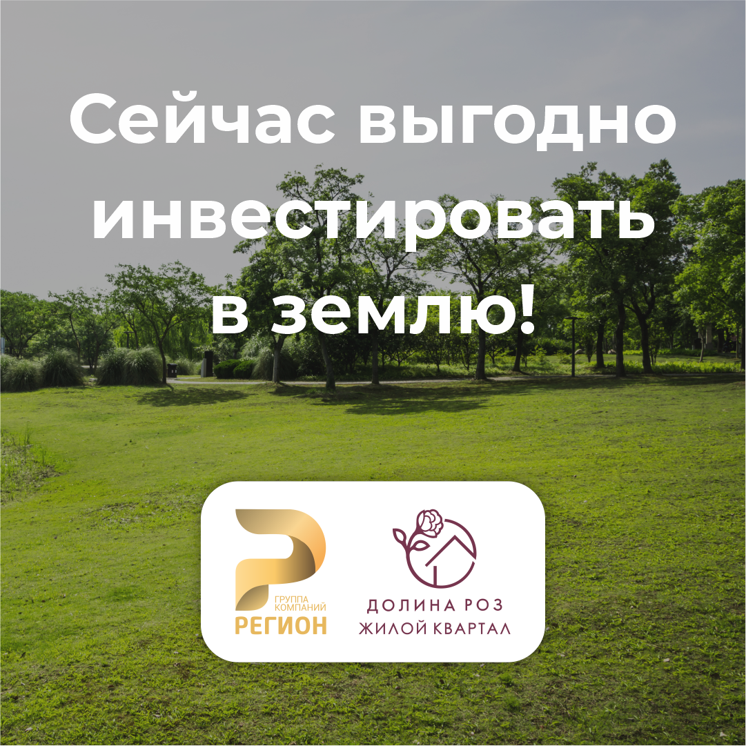 🏠 Эксперты отмечают, что именно земельные участки являются стабильными объектами инвестиций, которые со временем значительно увеличивают свою стоимость. Давайте считать. 🏡 В 2021 году участок (5 соток) в ЖК «Долина роз» стоил 400 тысяч рублей за сотку. Сейчас земля с аналогичными характеристиками стоит уже 700 тысяч рублей/сотка. Получается, инвестиционный рост составил 75%. В каком банке предложат такую прибыль за два года? И это только начало. 📈 Цены на землю в Ставрополе постоянно растут, и востребованность ЖК «Долина Роз» повышается - идеальное сочетание для инвестиций. Если приобретете участок в нашем квартале сейчас, то уже через пару недель сможете продать его дороже. Решайтесь и инвестируйте правильно! ☎️ Записывайтесь на встречу в отдел продаж 8 (8652) 611-116 и бронируйте свой участок, пока они есть в наличии. Реклама. ООО "СК "РЕГИОН". ИНН 2635253819
