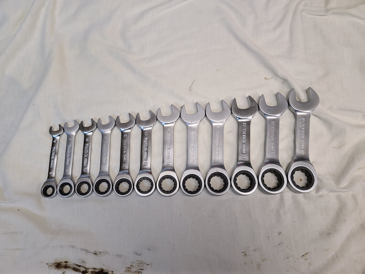 Да, внезапно это короткие рожковые ключи. Очень часто возникает ситуация, когда большим ключем не подлезть и на помощь придет короткий. Например, для прикручивания МКПП к двигателю на ниве было потрачено много времени, потому что большой ключ туда еле залазил и не давал достаточного пространства для того, чтобы крутить болт. Да и рука у меня большая, а места мало. Вот тут на помощь бы пришли такие маленькие ключики, да и трещетка бы очень помогла, где я каждый раз переставлял ключ после половины витка резьбы. Тут бы крутил и крутил. В общем всем рекомендую, кто всерьез увлекается тем, что крутит гайки.