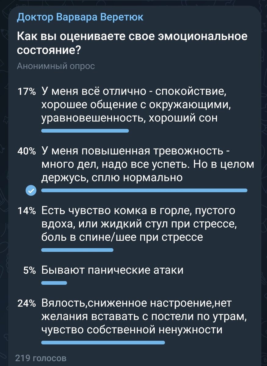 Добрый вечер, друзья! Пришла пора рассказать вам, почему я затеяла в своем канале опрос, посвящённый эмоциональному состоянию.