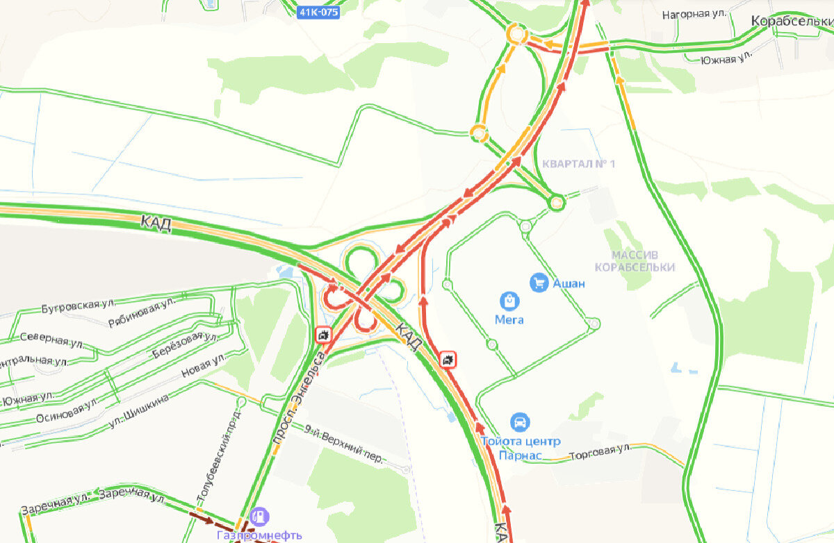 Пробка на три километра. Две аварии тормозят съезд с КАД на Новоприозерское шоссе На севере Петербургской кольцевой водителям приходится двигаться со скоростью пешеходов. Проблемы в районе съезда с КАД на Новоприозерское шоссе. Как сообщают в ФКУ «Упрдор Северо-Запад», автомобильный затор на момент публикации растянулся уже на три километра. «В 13:30 поступила информация о ДТП на А-121 км 4 в сторону области. Попутное столкновение 2 л/а. Без пострадавших. Занята вторая полоса. В 11:55 поступила информация о ДТП на км 25 внешнего кольца КАД. Попутное столкновение 2 л/а. Пострадавших нет. Заняты: 1 и 2 полосы», — сказано в сообщении ФКУ. На юге КАД тоже плотно, там две аварии на участке внутреннего кольца от Мурманского шоссе до Невы.