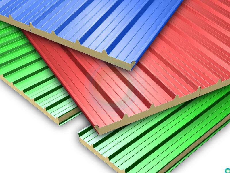 Чаще всего покрытием сэндвич-панелей служит оцинкованная сталь. Она надежно защищает утеплитель от влаги, ультрафиолета и других агрессивных воздействий, и сама успешно противостоит им. Используется преимущественно для наружных стен, а также кровельных конструкций.