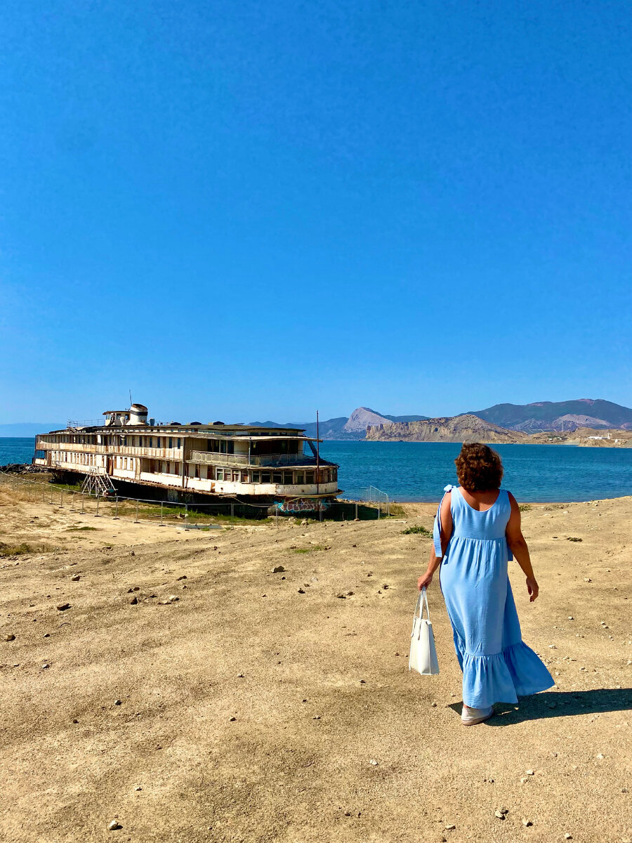 Набережная сегодня находится на стадии строительства, то есть само полотно асфальта уже есть, а вот инфраструктура пока еще имеется не полностью, тем не менее по пути можно сделать эффектные фотографии с заброшенным теплоходом Князь Багратион (из него гостиницу хотели делать, но, кажется, у судакской администрации аллергия на корабли), покачаться на качелях с видом на море и горы, а еще заглянуть ради фото в глемпинг на горе (как увидите высокую металлическую лестницу, вам туда).