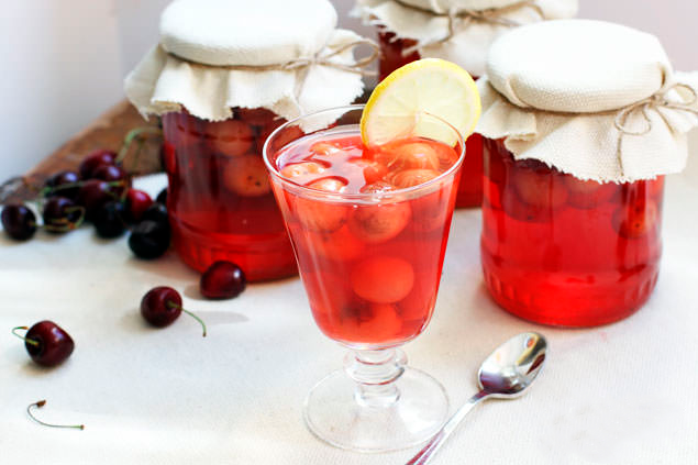 - Залейте вишню в банке кипяченой водой, оставив свободное пространство в 1/2 дюйма. Выжмите лимоны и разлейте сок по банкам.