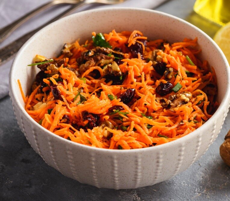 Овощные салаты очень полезны. В моркови, например, много каротина и, естественно клетчатки. Но если вы не в состоянии взять и съесть просто так морковку - сделайте из нее салат.