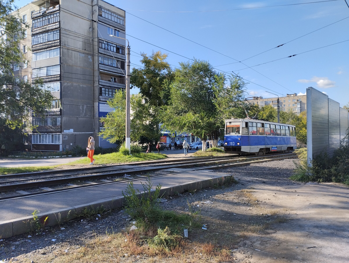Трамвай в Бийске является второй системой рельсового городского транспорта в Алтайском крае. Движение было открыто 13 июня 1960 года. Всего действует 17 маршрутов, правда больше половины из них "литерные", имеющие к основной цифре дополнения в виде литер А, Б и К. Максимальный номер маршрута 7, но помимо основных маршрутов 1-7 имеются дополнительные 1А,2А,2К,3А,3К,4А,5А,5Б,6К,7К. В Бийске работают следующие типы трамваев 71-605 (основная модель), 71-605А, 71-608К, 71-608КМ, "Татра" TB-4D (КВР Барнаул), "Татра" B-3DM (КВР Барнаул), 71-619КТ (1 вагон), МТТЧ (модернизированная "Татра", поступили из Москвы). Наш читатель предложил для подборки несколько снимков трамваев Бийска, сделанных в сентябре 2023 года. 1. Вагон 71-605 номер 193, ул. Мартьянова, 15.09.2023 года. 2. Вагон 71-605 номер 185, ул. Мартьянова, 15.09.2023 года. 3. Вагон 71-605 номер 144, ул. Мартьянова, 15.09.2023 года. 4. Вагон 71-605 номер 140, ул. Мартьянова, 16.09.2023 года. 5. Вагон 71-605 номер 223, ул. Мартьянова,