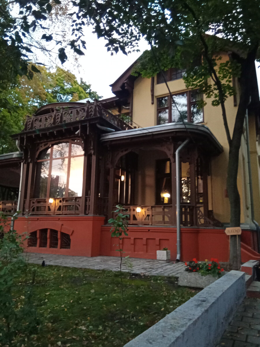 Не фигурным катанием единым...Есть у меня исключение на моем канале. Я очень люблю театр, и отчеты по интересным местам тоже сюда выкладываю. Редко, но бывает. Потому что поделиться очень хочется. Этот театральный сезон решила начать с чего-то новенького. Поэтому отправилась на спектакль незнакомого до этого времени театра «ОЛИМПиК». Все располагало к просмотру: прекрасная погода, красивейшее место и спектакль по Чехову. Купеческий особняк Носова начала XX века поразил атмосферностью: модерн, плавные очертания, литые фонари, вокруг - столетние деревья. Заходишь, и сразу идешь в гостиную с ощущением, что сейчас нальют чай в фарфоровые чашки. Сам спектакль очень оригинально решен сценически. По одну сторону – несколько рядов стульев, по другую - старинный буфет, столик и еще какая-то утварь. Полное ощущение, что ты присутствуешь при любительском спектакле вековой давности, и в старинном интерьере развлекается местная купеческая молодежь, устраивая «чеховские сцены». Спектакль «Черное и