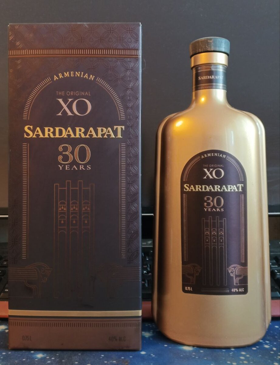 Продолжаем говорить о армянских коньяках. Очередной обзор от моего друга Alex Sobolev (текст автора; образец и фото предоставлены Сергеем Измалковым). Герой сегодняшнего обзора - Армянский коньяк Сардарапат 30 лет. Ни в коем случае мои отзывы не претендуют на безапелляционную объективность. Это только мое личное мнение о конкретном напитке, а оценка выражает только мое отношение к нему. Всем привет !Сегодня впервые в жизни пробую армянотридцатку. Мне прислали несколько. Первым пойдёт Сардарапат 30, так как я знаком с его молодой версией. Налил в бокал и зашёлся от аромата молочного шоколада. Вкусно и необычно. Цвет в бокале понравился. Хоть он и чисто-прошянский, тёмный, но переливающийся, янтарно-золотой. Зачёт. Сильно портит впечатление интернетный вид "тары" этого чуда. Какая-то нелепо-аляпистая золотая фляга... Может в натуре она и лучше выглядит, но мне лично не заходит и не даёт дать за первое впечатление полновесную десятку. Первый нос: не ВАУ, но очень, очень солидно и серьёзно