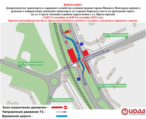 С 8.00 13 сентября до 8.00 16 сентября будет закрыт проезд по улице Сергея Акимова (съезд с Борского моста в сторону ул. Народная).