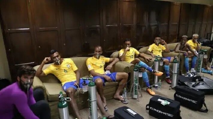 Один из самых сложных футбольных выездов в мире. Проблема в том, что играть предстоит на высоте 3650 метров, где и без футбола люди частенько сталкиваются с кислородным голоданием. Вот, например фото из раздевалки сборной Бразилии - каждому игроку был предоставлен личный кислородный набор. Помогло - бразильца выиграли тот матч 4:0. А Анхель Ди Мария использовал кислород прямо на футбольном поле. За сутки до матча, как сообщает El Ciudadano, при выходе из автобуса по прибытии в отель некоторые игроки сборной Аргентины держали в руках кислородные баллончики для дыхания. По данным TyC Sports, такие баллончики есть у каждого игрока, что позволит им быстрее акклиматизироваться в условиях разреженного воздуха на большой высоте. 12 сентября сборная Аргентины сыграет с Боливией в южноамериканском отборе на ЧМ-2026. Матч пройдет на стадионе «Эрнандо Силес» в Ла-Пасе, расположенном на высоте 3650 метров над уровнем моря.