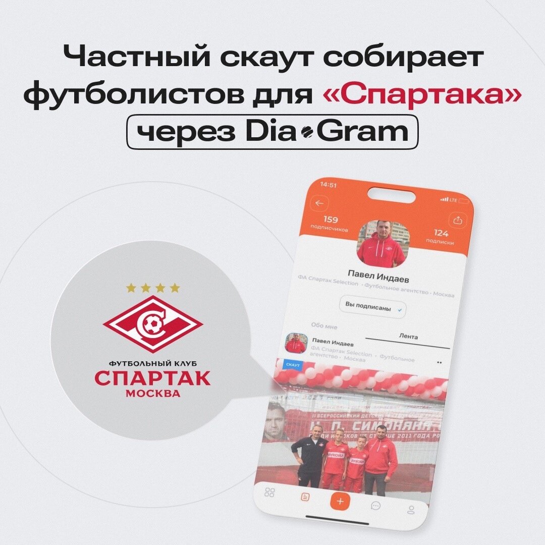 Павел Индаев — не просто скаут, а человек с миссией! Весной этого года он основал агентство «Спартак Selection», задача которого отыскать лучших молодых футболистов на просторах России и дать им возможность проявить себя в столице! В конце этого лета сборная мальчишек, созданная благодаря усилиям основателя, дебютировала на Кубке Никиты Симоняна, и результаты просто поразительные! Два ярких таланта приглашены на тренировки в школу «Спартака». “У нас очень хорошие отношения со спартаковской школой. Когда я рассказал руководству о своей идее создания агентства, они меня поддержали. Очень им за это благодарен”. Несмотря на то, что проект ориентирован на спартаковскую школу, для талантливых футболистов не закрыт путь в другие академии. Если народная команда не становится домом для перспективных игроков, Павел всегда готов рассмотреть предложения от других школ: «Локомотива», «Чертаново», ЦСКА, «Динамо» и т.д. Павел уверяет: Dia-gram серьезно помогло ему в поиске талантов — целых 60% финаль