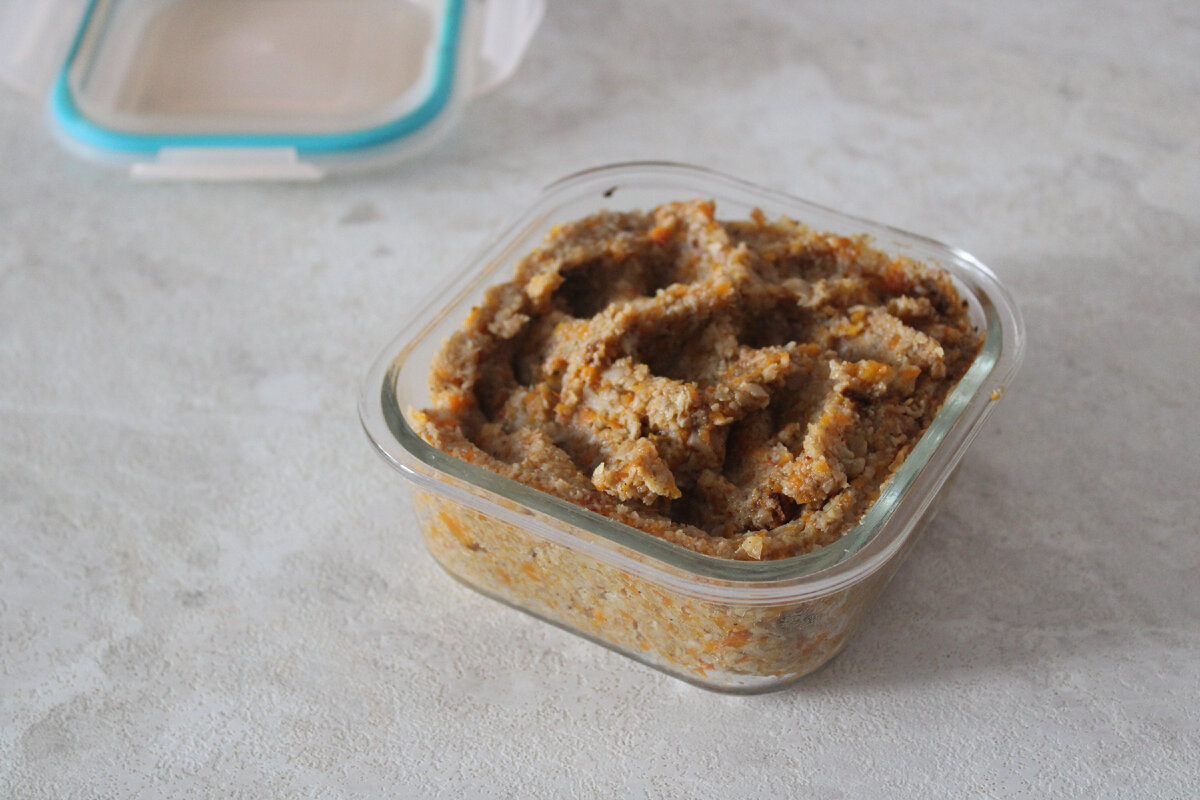 Далее добавляю морковь тоже измельченную с помощью блендера. Обжариваю ее месте с луком еще около 5 минут.