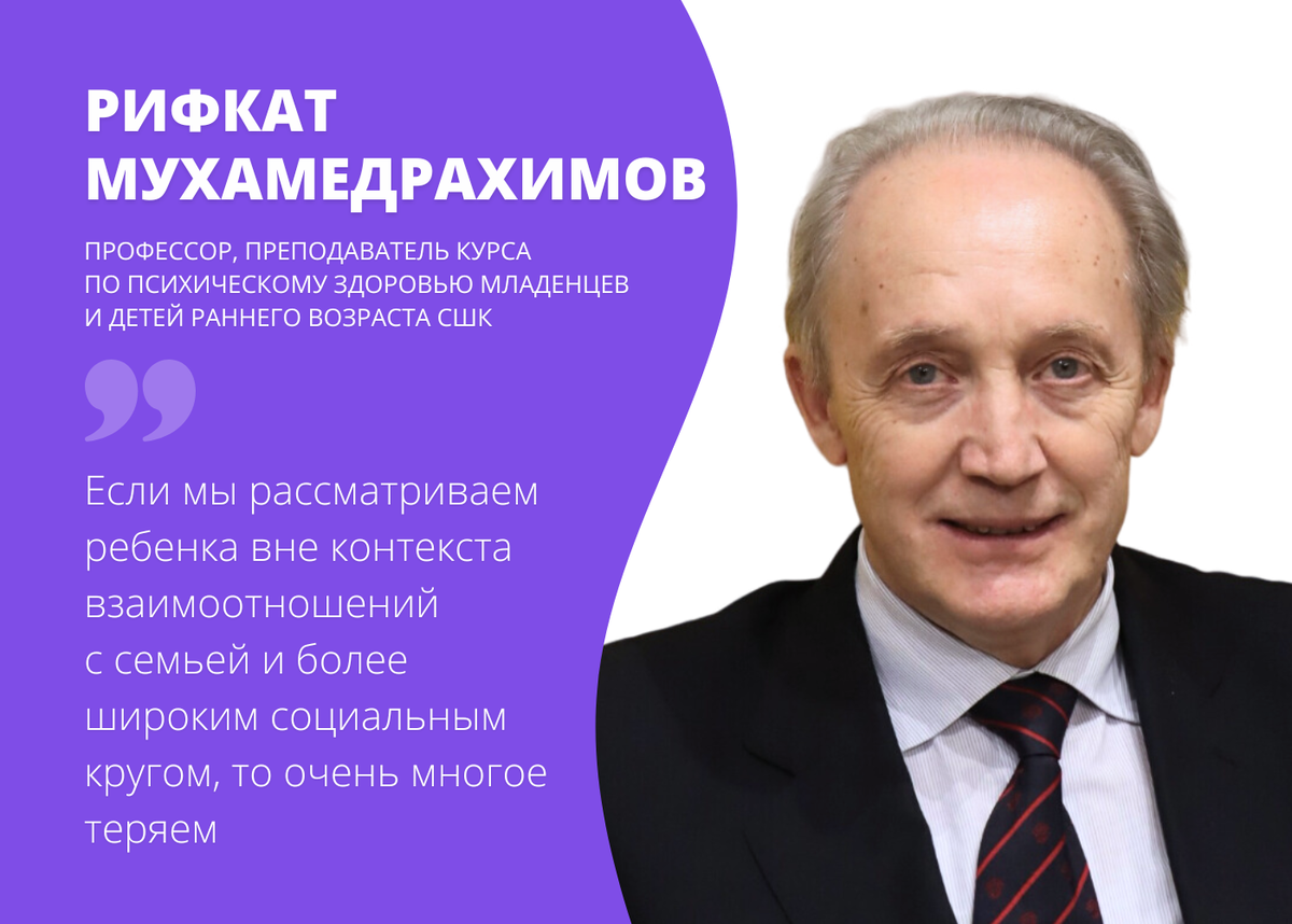 Что мы понимаем под психическим здоровьем младенца, как эти знания помогают специалистам разного профиля в работе и почему прежде, чем учить чему-то, нужно «смотреть» глубже, рассказал профессор, доцент и заведующий кафедрой психического здоровья и раннего сопровождения детей и родителей факультета психологии СПбГУ Рифкат Жаудатович Мухамедрахимов.