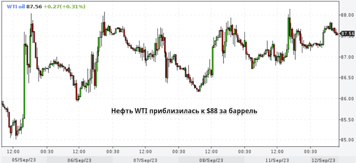 Цены на нефть приблизились к самому высокому уровню в этом году. Эксперты считают, что рынок готовится к публикации важных отчетов, которые прольют свет на перспективы спроса и предложения График нефти марки WTI интервалами в 30 минут. Нефть марки West Texas Intermediate поднялась к отметке $88 за баррель после снижения на 0,3% в понедельник, при этом технические индикаторы указывали на перекупленность рынка. Организация стран-экспортеров нефти и Управление энергетической информации США сегодня публикуют ежемесячные отчеты; в среду выйдут оценки Международного энергетического агентства. Фундаментальные факторы, которые способствовали росту цен на нефть с июня, все еще никуда не делись. Лидеры ОПЕК+ Россия и Саудовская Аравия сдерживают предложение, при этом спрос, скорее всего, будет расти: Китай, главный экспортер, нефти, стабилизировался, а вероятность того, что США вступят в болезненную рецессию, снизилась. Кроме того, в понедельник доллар США продемонстрировал самое значительное па