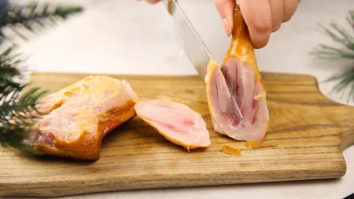 1. Курицу, яйца и чернослив порезать небольшими кусочками.