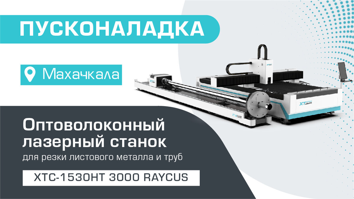 ПУСКОНАЛАДКА ОПТОВОЛОКОННОГО ЛАЗЕРНОГО СТАНКА ДЛЯ РЕЗКИ ЛИСТОВ И ТРУБ XTC-1530HT/3000 RAYCUS В МАХАЧКАЛЕ