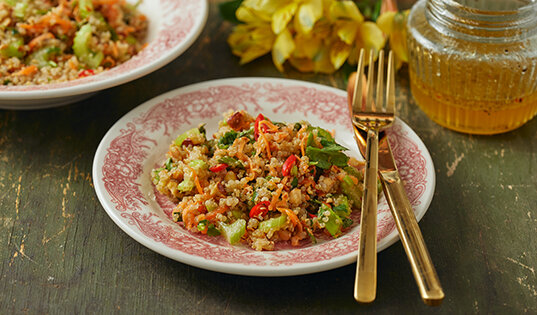 На смену лёгким летним салатам приходят осенние - более сытные, с тёплыми ингредиентами, полезными крупами и сезонными овощами. В этой статье собрали для вас самые интересные рецепты осенних салатов, которые можно готовить как в будни, так и в праздники. Салат с киноа и морковью Сытный вегетарианский салат из киноа с овощами, орешками и простой заправкой на основе яблочного уксуса - вкусное блюдо на каждый день. Конечно, киноа можно заменить гречкой, булгуром или другой крупой, но в киноа больше растительного белка (подробный рецепт). Салат со свеклой и фетой Если вам надоели тяжелые салаты с майонезом, приготовьте этот простой салат всего из 3 ингредиентов: варёной свеклы, феты и грецких орехов. Это прекрасное дополнение к крупам, а также блюдам из мяса или птицы (подробный рецепт). Салат с виноградом Виноград не так часто используют в салатах, а зря! Сочные кисло-сладкие ягоды прекрасно сочетаются с салатными листьями, свежими овощами, птицей и различными заправками. Для приготовлен