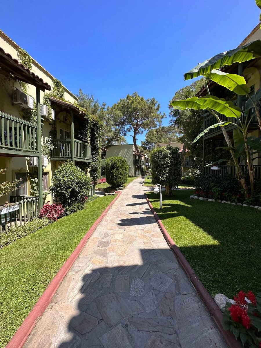 Отель был построен в 1991 году в пос. Бельдиби, многие его помнят еще как Amara Club Marine. По соседству расположен известный всеми Rixos Sungate 5*. Реновация проводилась в 2021-2022 году, а в 2023 сделали косметический ремонт в номерах. Отель очень понравится тем, кто любит большие зеленые территории и проживание в бунгало. Из инфраструктуры рядом тут есть лавки и рынок с сувенирами. Первое, что можно отметить, попав на территорию, это то, что здесь очень зелено и уютно. Площадь 55000 кв.м., вся в соснах, цветах, очень ухоженная. Прогулявшись по территории можно увидеть небольшие прудики, фонтаны, фигурки фламинго, а еще здесь есть мини-зоопарк с кроликами и курочками. Можно посидеть на милых лавочках или отдохнуть в гамаке. Хоть отель и наход