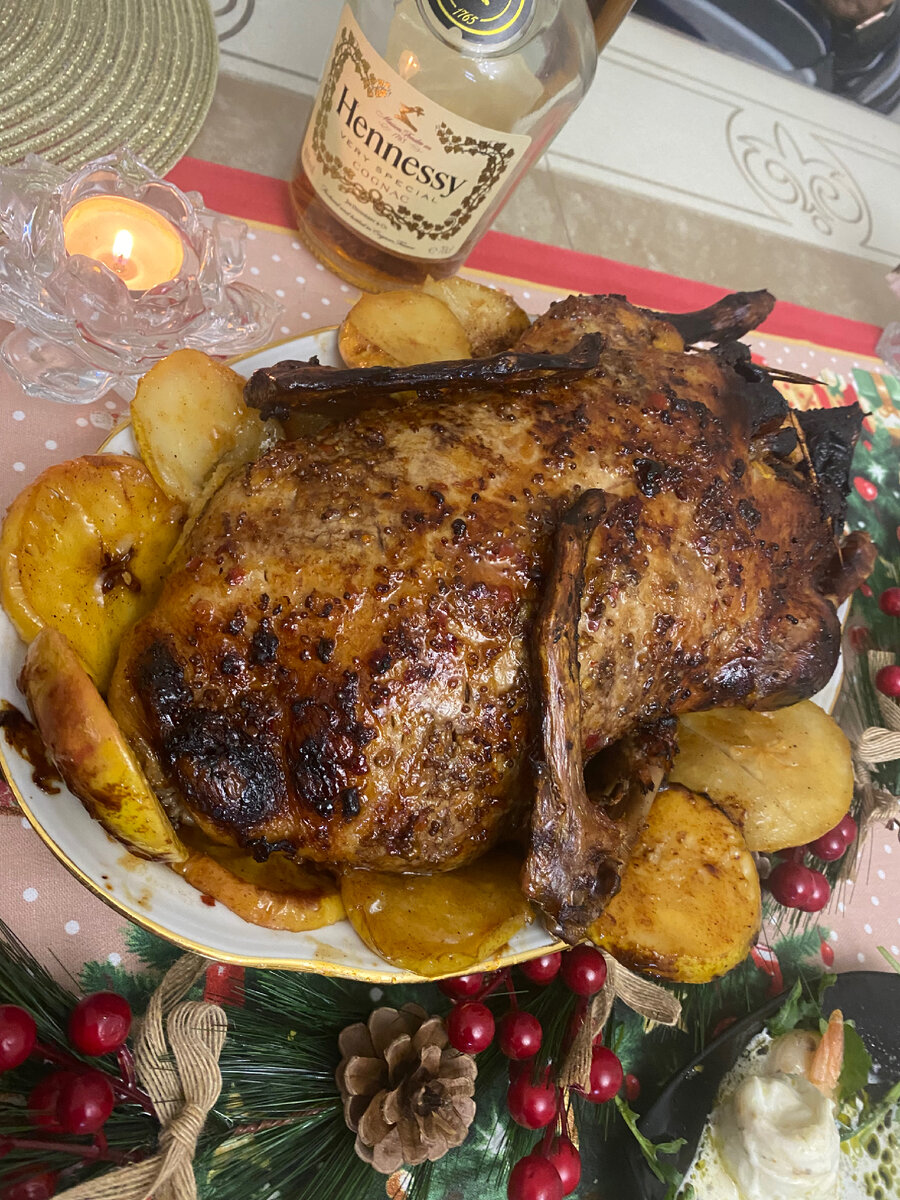 Вы сейчас удивитесь,но это наверное самое короткое описание готовки утки будет)))и да,в данном рецепте мы будем играть с Вами в докторов 😅а вернее будет сказано в ветеринаров 😁 Нам понадобится: все эти ингредиенты мы смешиваем…ииии…берем большой шприц с толстой иглой и набираем в него данный соус)сразу после говорю,немного соуса оставляем на следующий день а далее,делаем утке мезотерапию))мелко ее обкалываем данным соусом.после тогда,как косметические услуги окончены,вы убираете утку благополучно в холодильник на ночь) и когда вам ее надо будет положить в духовку,во внутрь утки нарезанные кубиком апельсин,яблоко,чернослив или абсолютно любые на ваш вкус фрукты и ягоды, начиняете утку) а сверху нашу утку натираем солью и специями на ваш вкус))я просто смесью специй для курицы беру. Кладем в форму и сверху накрываем фольгой…на 185 градусов на 2 часа..забыли и ушли… вернулись открыли утку,достали оставшийся соус от инъекций и помазали нашу красотку…и обратно в духовку еще на пол часика