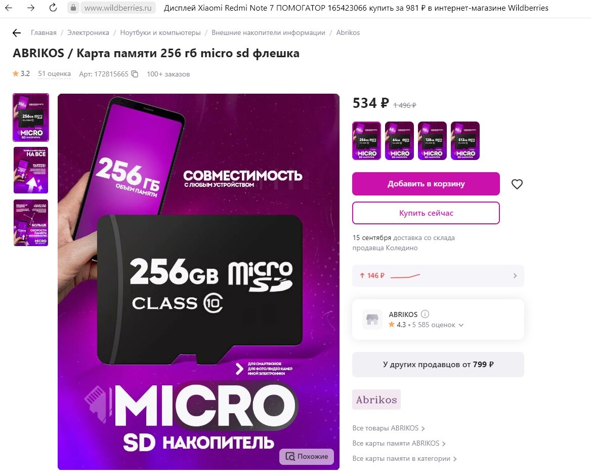 Поддельные CD карты и дисплеи на WILDBERRIES. Доброго всем времени суток! Начну с начала истории. Внучка ей 8 лет, утопила в речке телефон, мы купили ей б.у, в хорошем состоянии, но без сд карты, подумав решили и сд карту заказать, выбор пал на WB а именно https://www.wildberries.ru/catalog/172815665/detail.aspx?size=286677322 Устраивало и цена и размер 256 Гб., внучка прыгала от радости, каждый день спрашивала, когда приедет в ПВЗ. Вот счастливый день настал, забрали сд.карту в ПВЗ WB. Пришли домой установили в телефон, телефон сразу запросил форматирование, запустили форматирование, на телефоне высветилось, не возможно отформатировать, не известный формат. Пошёл тогда я в мастерскую, там на меня посмотрели, и с сожалением сказали: ЭТО ПОДДЕЛКА, сколько реально будет гигабайтов? сейчас узнаем. Запустили программу, вначале программа выдала 32 Гб, но после проверки на ошибки, реальный размер ВСЕГО 1,5 Гб., ВОТ ВАМ и 256 Гб. Я расстроился, но что делать??? Придя домой правду внучке н