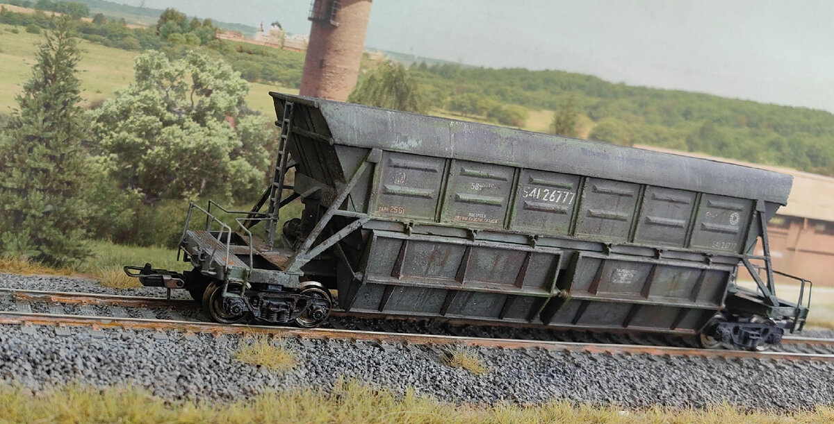 Продолжим серию интересных фотоподборок с ЖД моделями вагонов и спецтехники в масштабе 1:87, появившихся в различных источниках. Это третий выпуск дайджеста; с предыдущими вы можете ознакомиться по ссылкам ниже. Модель вагона для перевозки торфа Автор: Виталий Бабенко Достаточно редкая модель вагона для перевозки торфа. Такой вагон и в масштабе 1:87 нечасто встретишь, а вживую увидеть настоящий - и вовсе большая удача. Модель сделана, пожалуй, с максимально возможным количеством различных видов следов эксплуатации и выглядит как очень и очень бывалый вагон, не вылезавший из торфяников годами. Очень живописная картинка! Модель платформы 12-401 с самосвалом КрАЗ Автор: Виталий Бабенко Виталий продолжает радовать темой реалистично окрашенных и состаренных моделей платформ с грузом техники на них. В этот раз была представлена модель платформы с грузовым автомобилем КрАЗ-256Б. Модель, установленная на платформе, выглядит очень живо и реалистично. Кстати, про модель грузовика мы уже рассказ