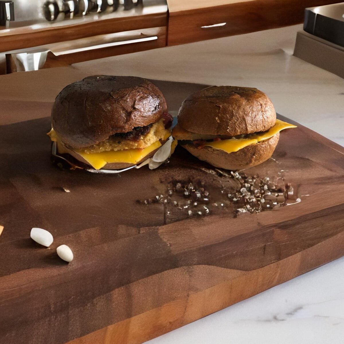 На чеснок не смотрите, это профилактика вирусов) Друзья! За лето я набрал, и похоже килограмм 10 . Поэтому начинаю свою программу похудению к Новому году. Сразу от калорийной еды не отказываемся а будем сокращать размеры порций. Вот такие мини-бургеры, я приготовил сегодня, чтобы не расстраивать свой желудок. Ну и конечно, Дынька) Закрываем сезон этой вкуснятиной, наверное пока больше покупать не буду. Как Вам мой завтрак здорового человека?