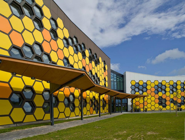 Общежитие Профессионального учебного центра в Валге. В здании установлено рекордное количество окон – 410. Каждое выполнено в виде шестигранника и напоминает медовую соту.