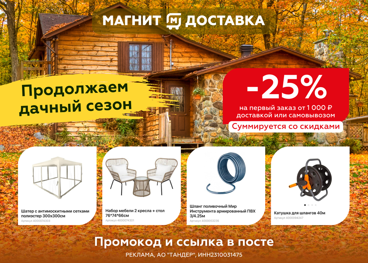 Покупки станут еще приятнее с промокодом 🌟 GRASS36764 🌟 Он подарит скидку 25% на первый заказ от 1000₽ в приложении или на сайте. Скидка не распространяется на сахар. Промокод суммируется с другими акциями и скидками. Оформить заказ можно на сайте или в приложении 👇🤗💖https://magnitdeli.prfl.me/halyava_i_tochka/79da2b8cbac4?erid=2VtzqxAigSL