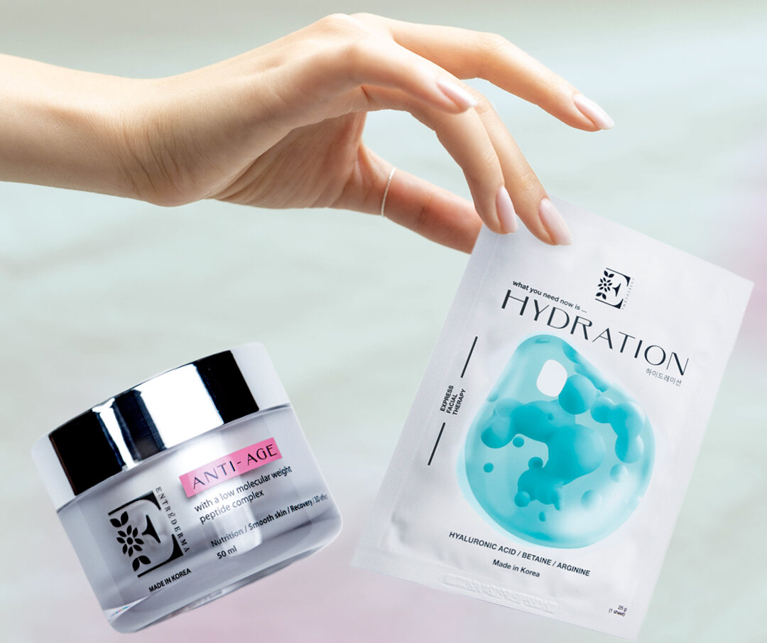 С возрастом кожа требует более увлажняющего, питательного и восстанавливающего ухода — это факт. Но поскольку у каждого человека есть свои индивидуальные особенности (повышенная сухость, выраженная потеря упругости, пигментация и т.д.), уход должен это учитывать. Сегодня мы покажем 4 варианта основного ухода за кожей, который поможет справиться с возрастными изменениями и улучшить качество эпидермиса с учётом персональных особенностей кожи. В качестве базового крема мы рекомендуем обратить внимание на корейский продукт Entrederma Anti-Age: он содержит мощные антиоксиданты, пептиды коллагена, ниацинамид, ценные растительные масла и экстракты, которые дают коже необходимое увлажнение, подтягивают овал лица и борются с морщинами. В целом, для видимых изменений большинству его уже будет достаточно — кожа заметно подтянется и разгладится. Для тех, кто хочет максимального эффекта без инъекций, подойдёт сочетание крема с тканевой маской, направленной на решение определённой проблемы. Влага —