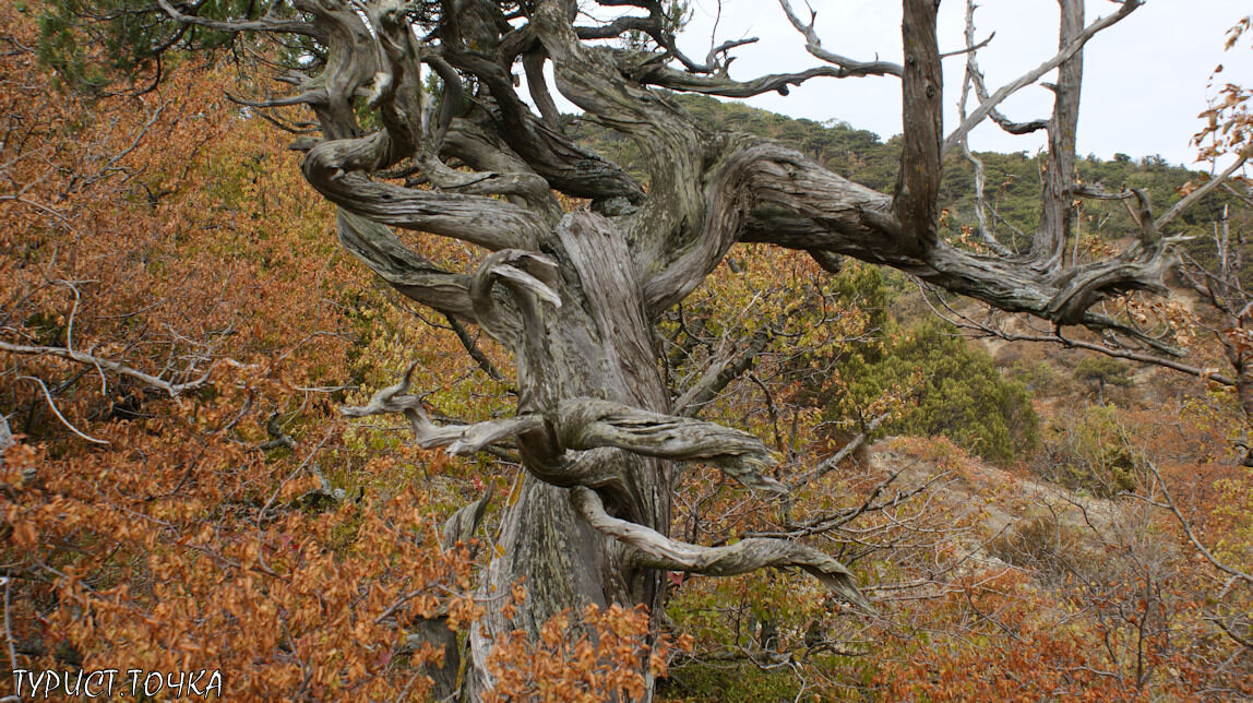 Мы видели только малую часть заповедника Большой Утриш, но зато в такое красивое время, когда зелень сочетается с золотом и багрянцем. Впрочем, причудливые деревья можжевеловой рощи в любое время года никого не оставят равнодушным.