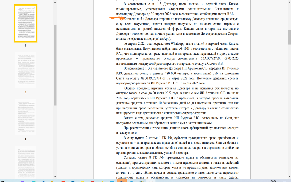 Пятнадцатый Арбитражный суд вынес прецедентное решение. С полным текстом постановления Пятнадцатого Арбитражного суда можно ознакомиться по ссылке. ✔Дело № А32-36944/2022✔ С решением суда первой инстанции можно ознакомиться ТУТ Арбитражный суд рассматривает экономические споры, деловые отношения характеризует стандартизированная лексика и документооборот, тем неожиданнее, Суд в России признал эмодзи 👍 в WhatsApp подтверждением сделки. Хотя, у нас не прецедентная система права, но судебную практику мы всегда активно ищем и охотно ссылаемся в суде. Предыстория: два предпринимателя заключили договор, что один передаст другому мобильный киоск в виде фургона Volkswagen. Цвет фургона планировали уточнить в дополнительном соглашении. Покупатель заплатил аванс, но не получил свой фургон в срок и подал в суд с требованием возместить 480 000 рублей неосновательного обогащения. Продавец сослался на то, что цвет фургона не был согласован в дополнении к договору, поэтому он не имел возможнос
