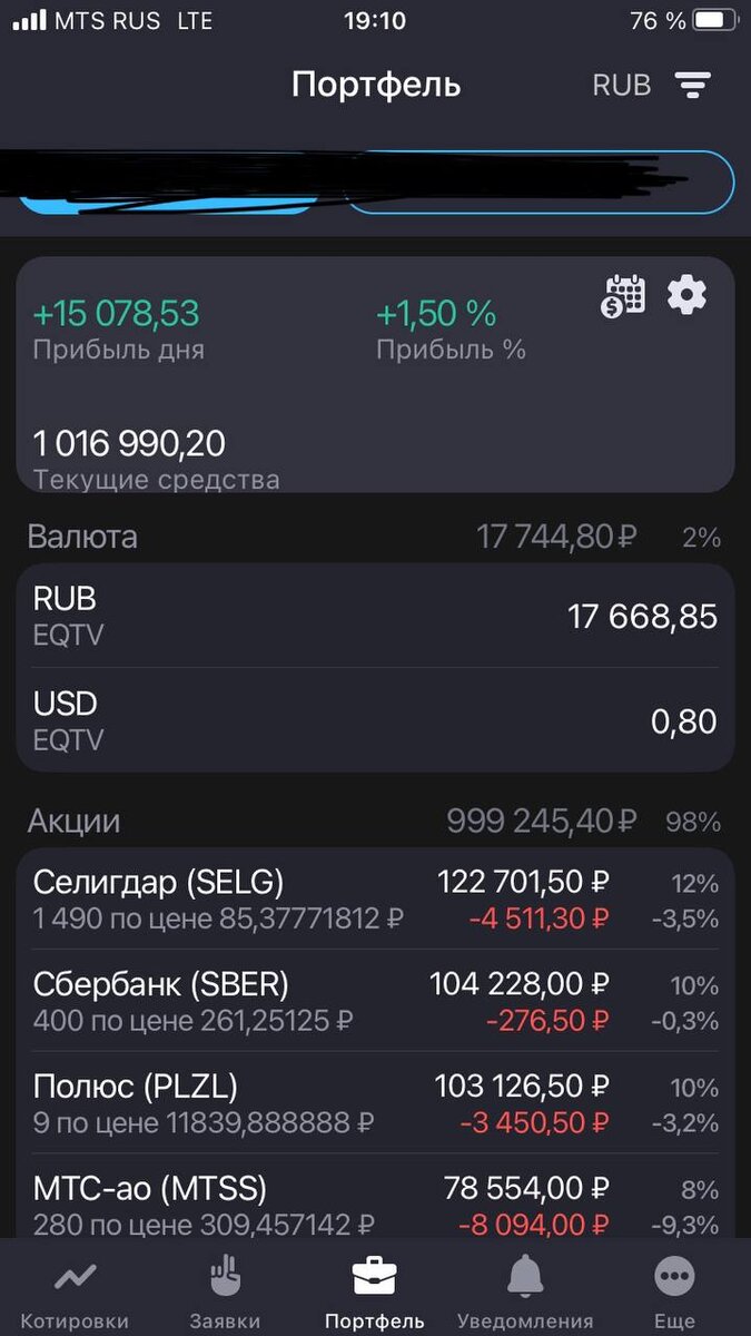 Которая предполагает планомерную поступательную фиксацию прибыли, которая в свою очередь обеспечивает планомерный и поступательный рост портфеля в целом. Сегодня вот зафиксировал 4 тыс прибыли, бывает и 10, бывает и 20, бывает и тысячу. Но никогда не закрываю позицию в минус.