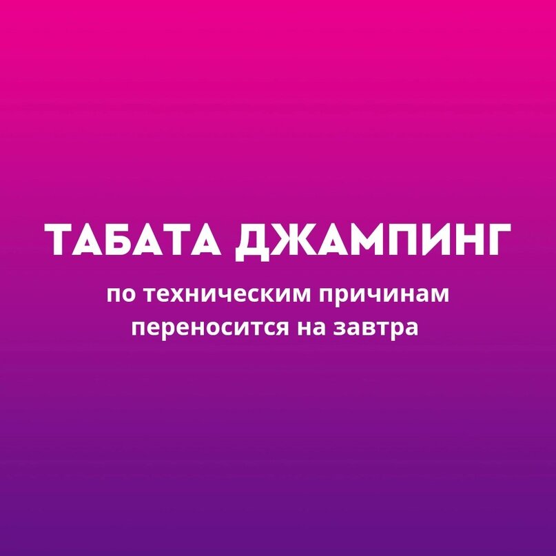 По техническим причинам сегодняшняя тренировка ТАБАТА ДЖАМПИНГ переносится на завтра (12 сентября в 20:00).
