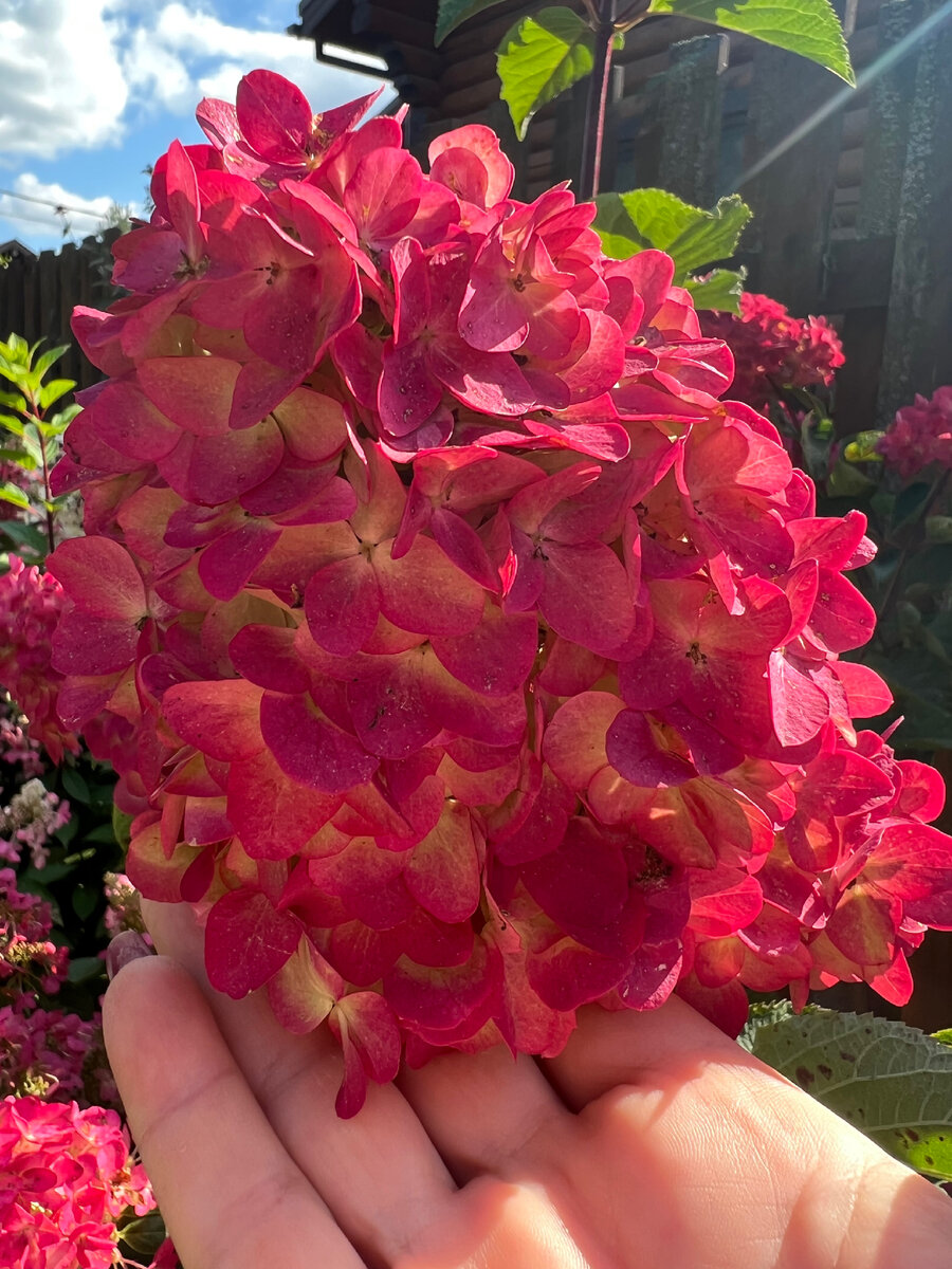 Кому белые, кому розовые, кому красные! А можно микс сделать. В общем пришло время делать букеты. Как я говорила чуть раньше, гортензии должны не много позеленеть после полного цветения и на ощупь должны быть как будто суховатые. Трогаешь их, а они уже не мягкие и сочные как раньше, а не много шуршат в руке. Холодным регионам надо торопиться, если кто хочет любоваться цветами всю зиму и до следующего сезона. Первый холодный туман или нулевая температура и гортензии станут коричневеть. Режу те ветки, которые осенью буду удалять полностью за ненадобностью. В основном, внутренние. Режу у основания, иначе побеги пойдут снова. Листья убираю полностью. Вниз головой не сушу. Если хотите так сушить ( вниз головой), то постарайтесь, чтобы цветы не соприкасались друг с другом - помнутся. Когда мы срезаем цветущие гортензии в правильное время, а именно сейчас, то ни дополнительно сушить их не надо, ни лаком брызгать - ничего дополнительного! Просто сорвать, поставить в вазу БЕЗ воды и любовать