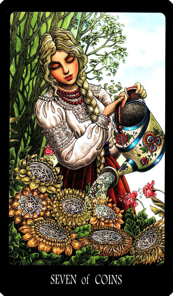 7 пентаклей Поспешность сегодня может лишь навредить вам. Продвижение любых дел будет сложным и медленным. Это Аркан испытаний, требующих умения, мужества и решимости, - при помощи этих качеств вы сможете доказать, что достойны успеха. Карта предостерегает от неразумности и суеты. Это может привести к физическому переутомлению и стрессу. Тщательно взвешивайте свои действия и идеи, избегайте спонтанности, спешки, тогда все получится. РАБОТА И ФИНАНСЫ: не ждите скорых результатов, вы будете разочарованы. Аркан означает выматывающую физически и морально работу, финансы достаются с большим трудом. Нельзя себе позволить ничего лишнего, только самое необходимое. ЛИЧНЫЕ ВЗАИМООТНОШЕНИЯ: 7 ПЕНТАКЛЕЙ символизирует рост качества отношений. Если вы вступаете в новый союз, то пусть все развивается постепенно. Сегодня все должно быть направлено на понимание и сохранение гармонии.