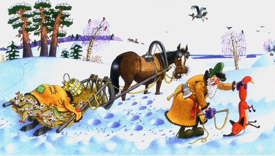2 И решил рыбалкою заняться, За лещами бреднем погоняться. А погоду выбрал не простую, Самую, что ни на есть, глухую. Было это зимнею порою, Чтобы было проще нам с тобою. Запряг лошадёнку в розвальни И тут получились россказни. Поехал он на речку к ключам, Что зимой не замерзают. А там, расскажу друзья я вам, Мало рыбы не бывает. Кинул бредень раз, да другой - Натаскал с них полные сани. Знать пора возвращаться домой, Весело жить без печали. В это время из лесочка Из сугроба снежного, Появилась Лисы дочка, В рыжей шубке нежного. Наш рыбак вёл в поводу Лошадёнку милую. Вдруг увидел на снегу Он Лисицу стылую. 05.08.2023